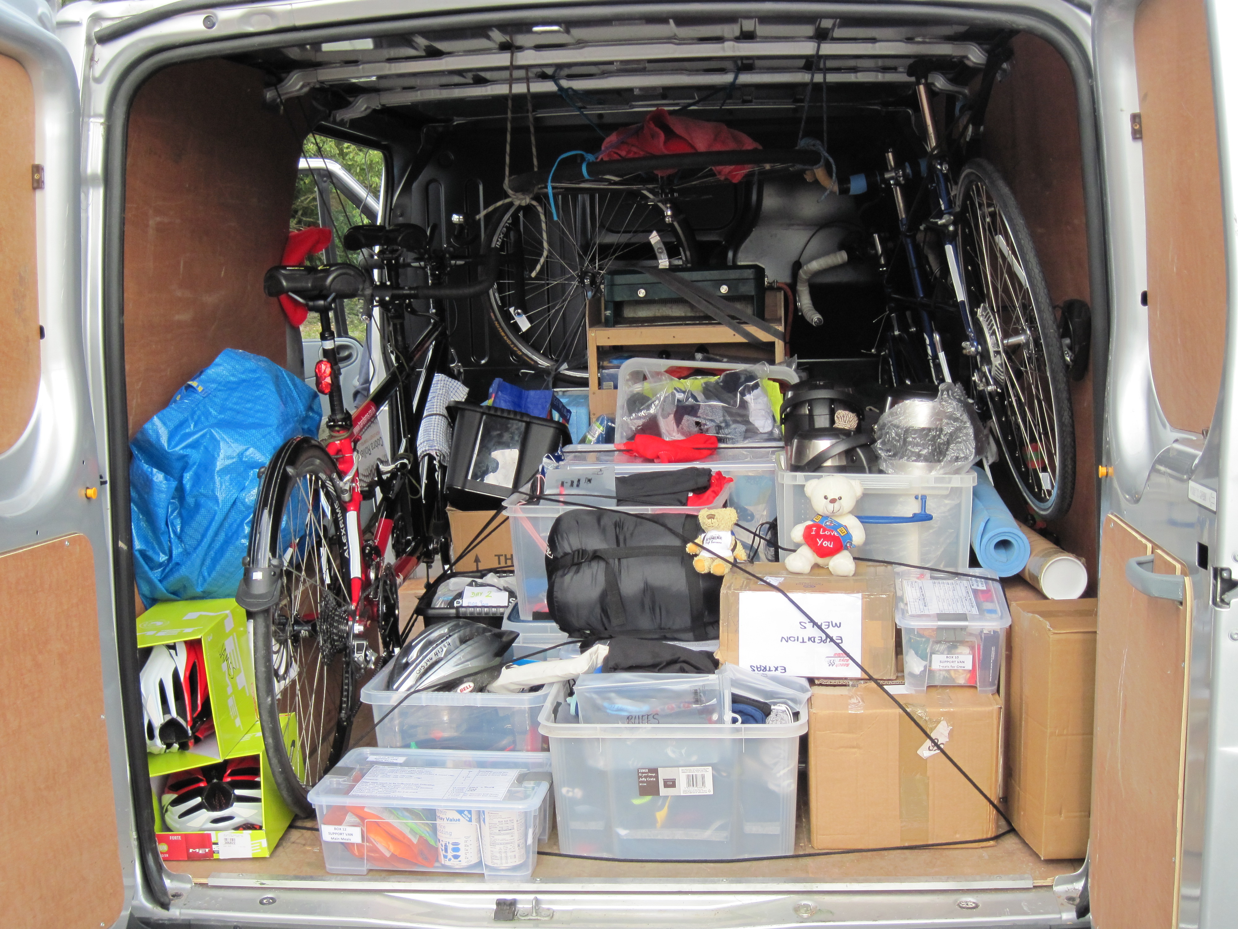 Today has been a day of things coming together, after all the months of planning. The support van and follow car have now been packed up, under the watchful eye of Borrans Junior and Bertie Brown. Thankfully it was a dry day which made everything easier.
