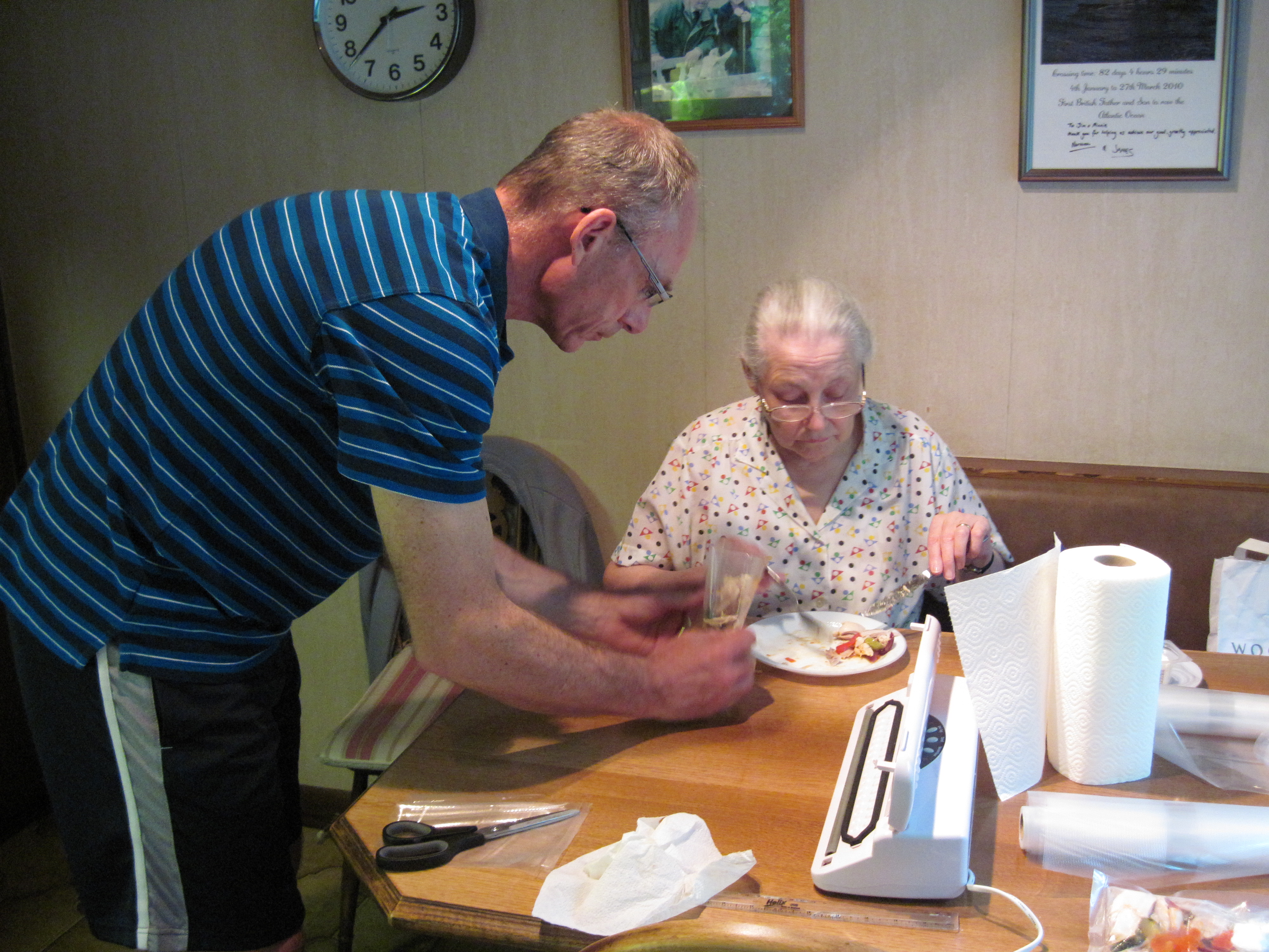 Norman and Christine are currently in Northern Ireland, visiting Christine’s mum near Coleraine. It has been a hive of industry in the kitchen over the last few days as RAI meals for Norman, James and the support crew have been prepared, vacuum packed and frozen – enough to last 5 days! Meals consist of chicken, roast vegetables and goat’s cheese; beef, pasta and vegetables; beef bolognaise and pasta; chicken and vegetable soup; vegetable and barley soup; grandma’s famous Christmas cake (tried and tested expedition treat over many years, including the Atlantic row!); date and walnut cake; flakemeal biscuits; apple and sultana crumble; pancakes and cherry berry bars. These will be collected by the support van when they pass through Coleraine in September.